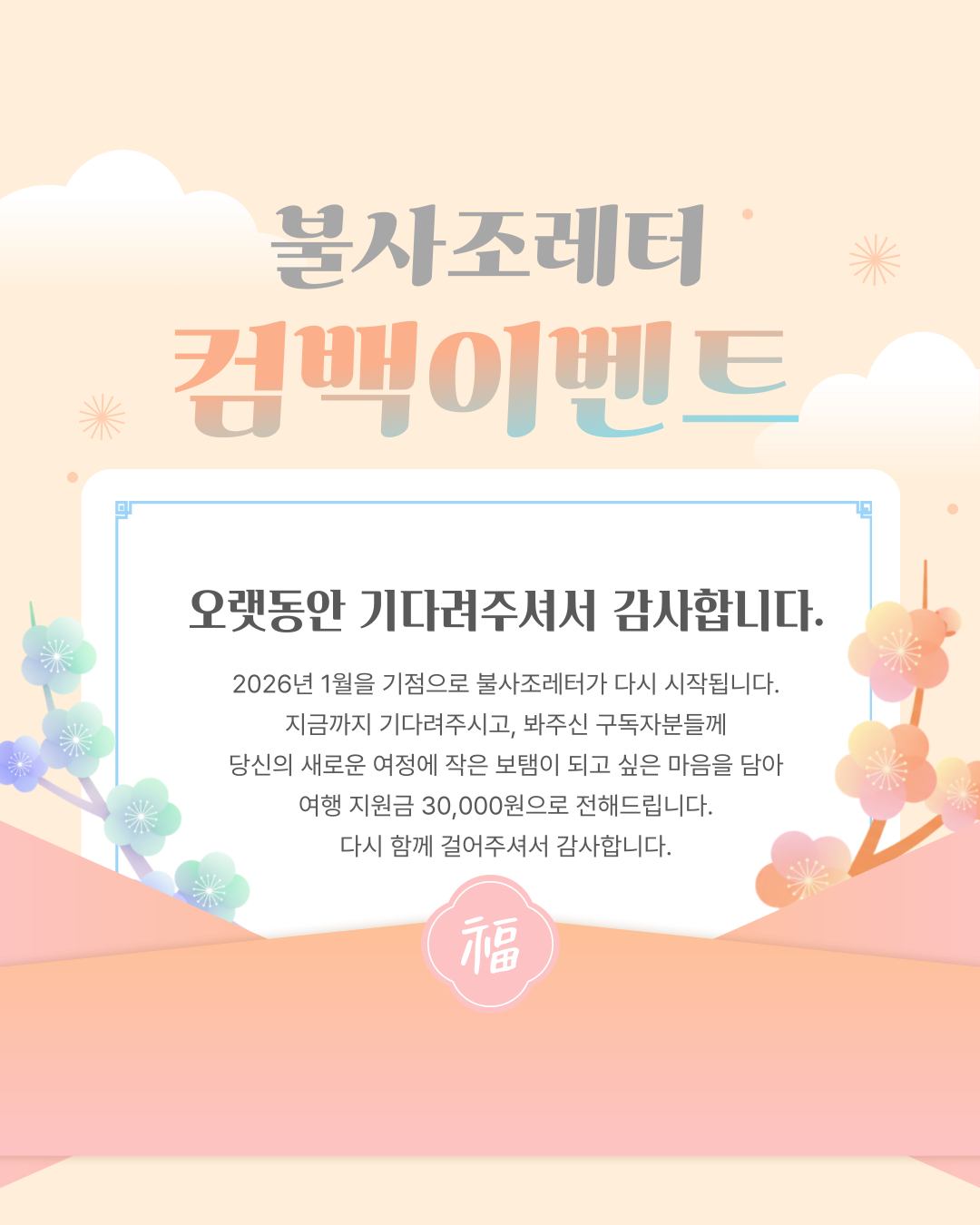 ๋์์๋ถ๋ค๊ป ๊ฐ๋ณ ์๋ด ๋ฐ ์ธ์คํ๊ทธ๋จ์ ๊ณต์ง๋ฉ๋๋ค. ๐