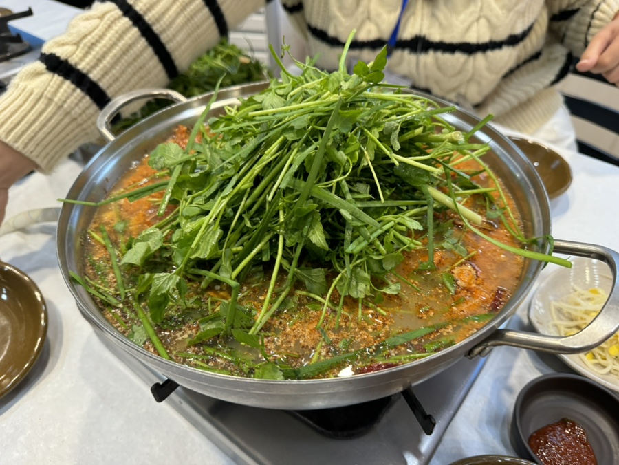 오픈 30분이면 40개 이상 테이블이 꽉 차는 담양 현청둥오리 전골 맛집이에요. 청둥오리하면 생소하지만 한약재와 미나리를 듬뿍 넣어 끓여내는 보양식으로 한 입 먹는 순간 여행의 피로가 싹 가시는 기분을 느낄 수 있답니다.